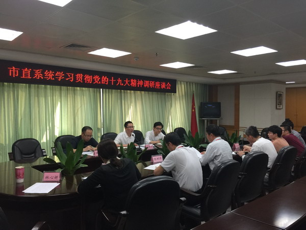 11月8日下午,市委组织部与市直机关工委联合到市外事侨务局开展学习贯彻党的十九大精神调研访谈活动,检查指导督促我局党组织和党员干部学习贯彻党的十九大精神。市第五调研访谈组组长、市委“两新”工委副书记洪智强和访谈组成员到会指导。局党组书记、局长陈鹏,党组成员陈树浩和局组织人事部门、机关党委办以及年轻党员干部参加了座谈会。